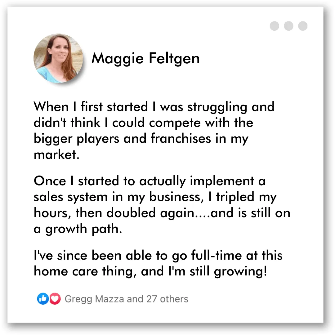 1. A free training “Key Pieces for Building my Home Care Business that ran mostly without me”
